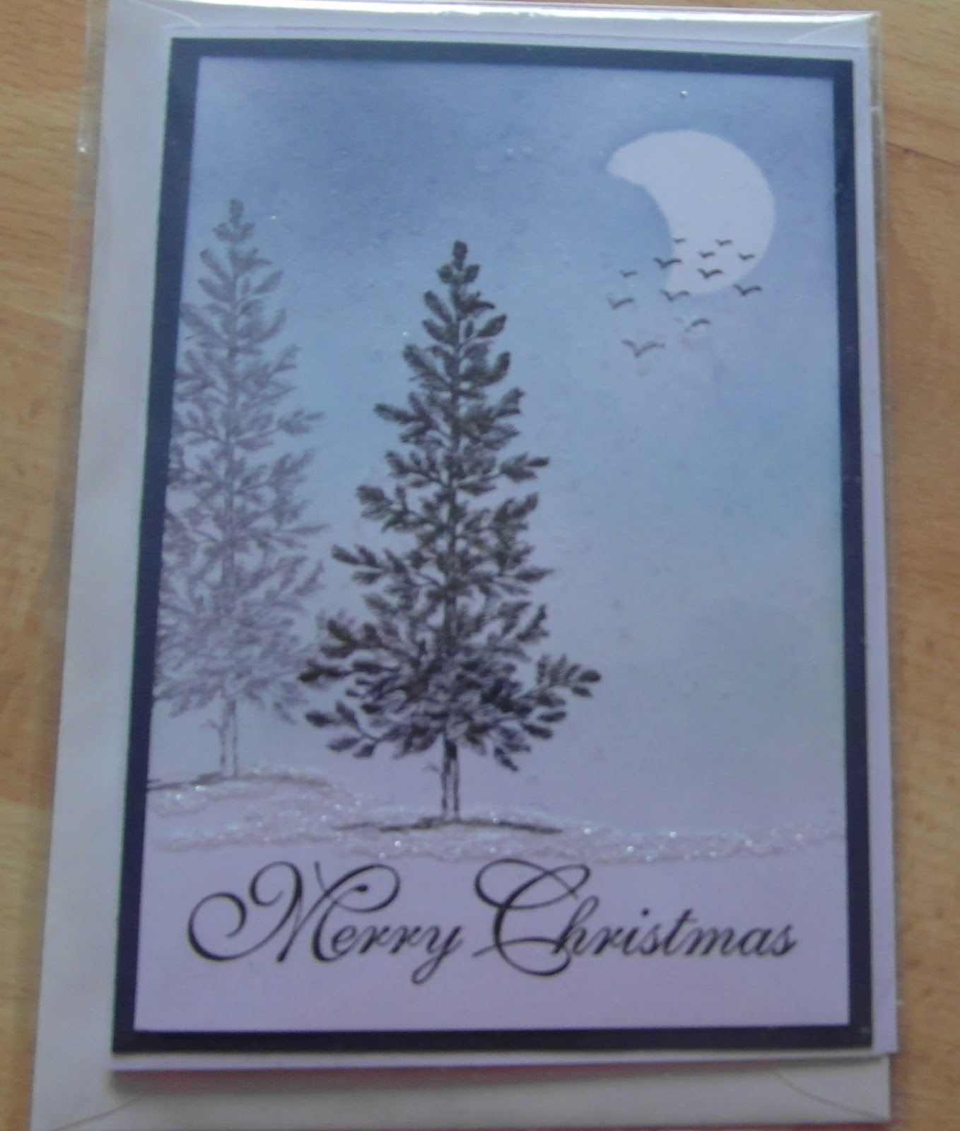 Two more projects for this week's workshops. Don't think the first card is ornithologically correct but I like the flight of birds in the sky. (And it is just a card after all!) Pity you can't see the stars.